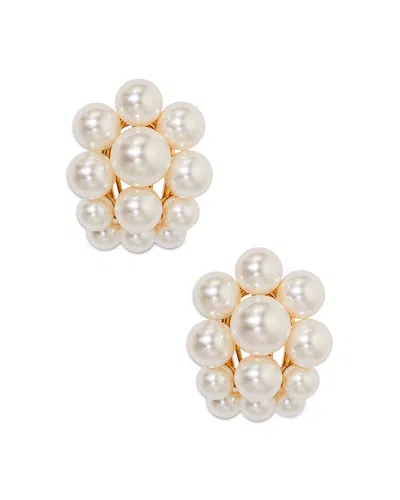 London Large Faux Pearl Cluster Earrings In Rhodium