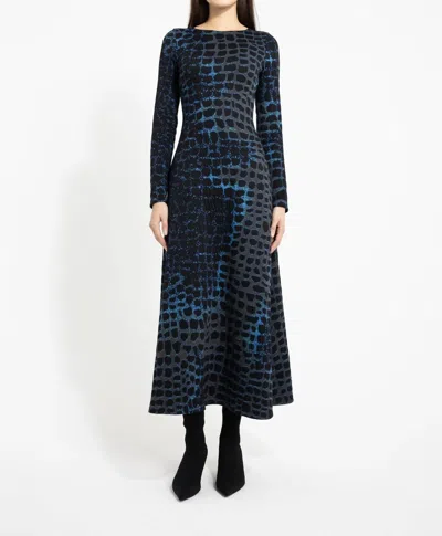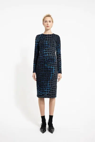 Romina Knit Jacquard Dress In Blue Grey Leopard In Multi