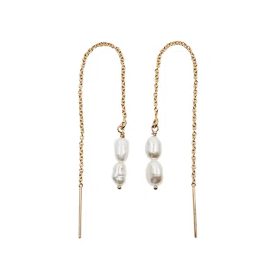 Women's Gold / White Classic White Droplet Threaders In Multi