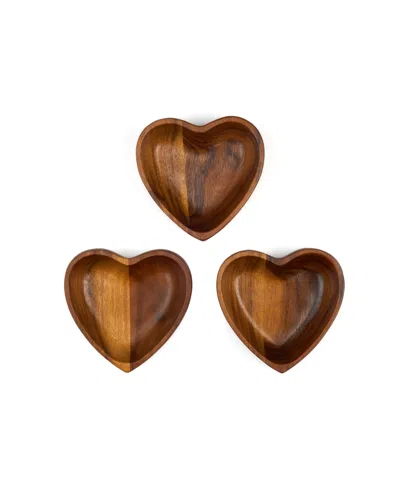 Nambé Eat Your Heart Out Set Of 3 Small Acacia Wood Bowls In Brown