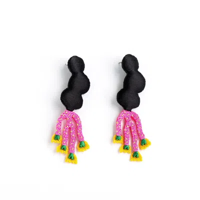 Women's Black / Pink / Purple Noi Embroidery Earrings - Black In Multi