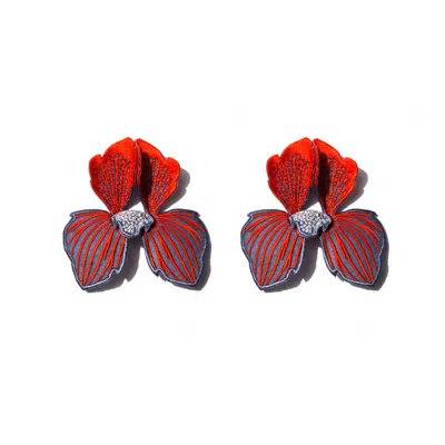 Women's Blue / Red / Orange Coral Egg Embroidery Earrings - Red