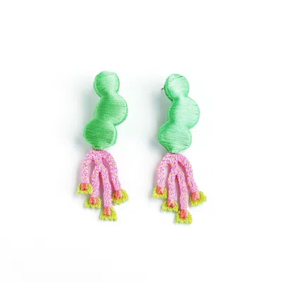 Women's Black / Green Click Flora Embroider Earrings - Green In Multi