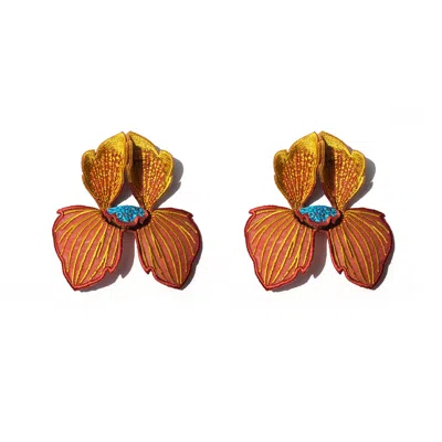 Women's Yellow / Orange Click Flora Embroider Earrings - Yellow