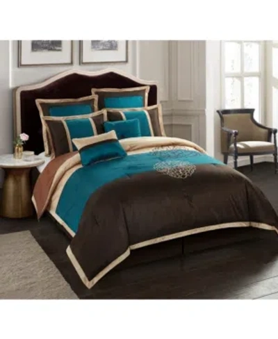 Phoebe 8-piece Comforter Set, Brown/aqua, Queen In Multi
