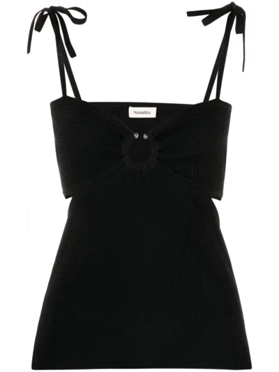 Black Anouk Seersucker Bralette Top In Blk Black