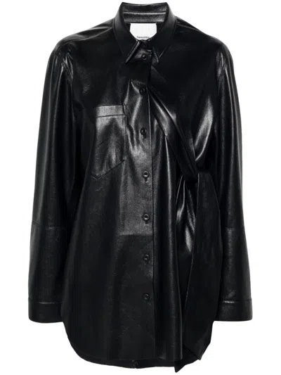 Long-sleeved Faux-leather Shirt In Blue
