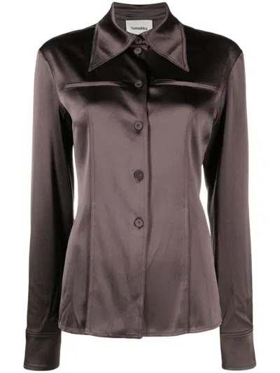 Oversized-collar Fitted Shirt In Brown