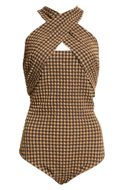 Rana Check Seersucker Recycled Polyester Blend Bodysuit In Multi