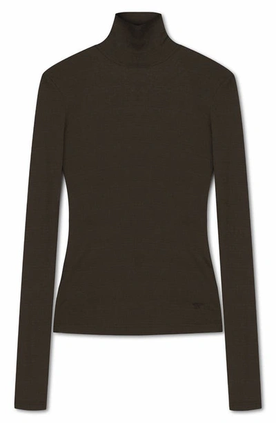 Josa Long Sleeve Open Back Turtleneck Top In Dark Moss
