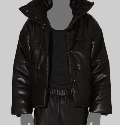 Pre-owned $994 Men's Black Faux Leather Hooded Oversized Puffer Jacket Size Xl
