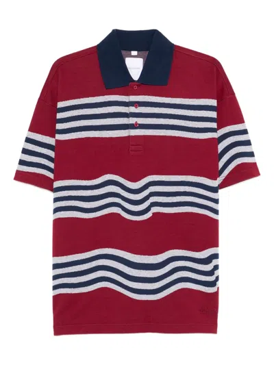 X Martine Rose Burgundy And Blue Striped Cotton Polo In Red
