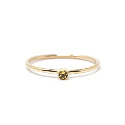 Women's Orange Slim Gold Single Stone Ring- Citrine