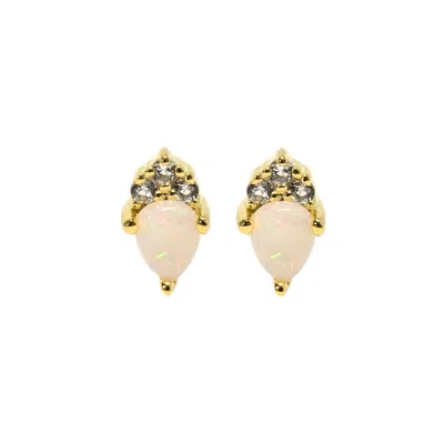 Women's Pear Atarah Studs- Opal & White Topaz, Gold In Multi