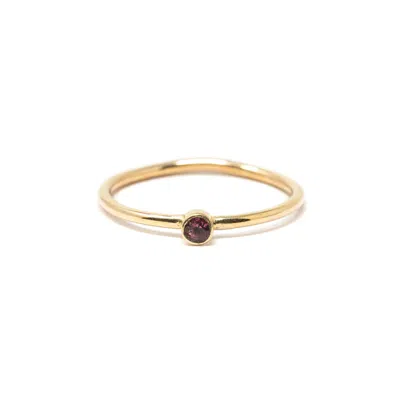 Women's Red Slim Gold Single Stone Ring- Garnet