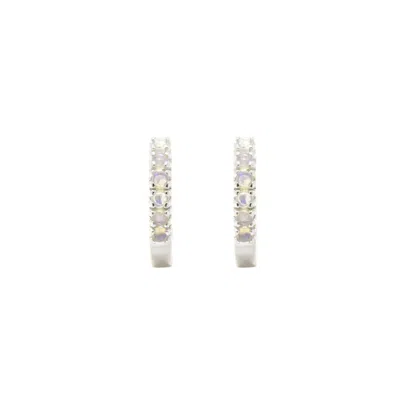 Women's White Adaya Huggie Hoops- Opal, Silver In Metallic