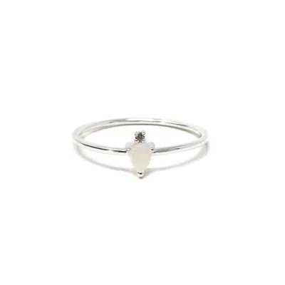 Women's White Pear Aaliyah Ring- Moonstone, Silver