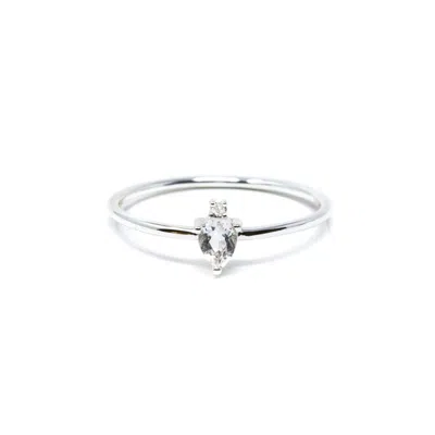 Women's White / Silver Pear Atarah Ring- White Topaz, Silver In Brown