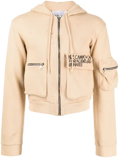 Camp-slogan Cargo-pocket Hoodie In Brown