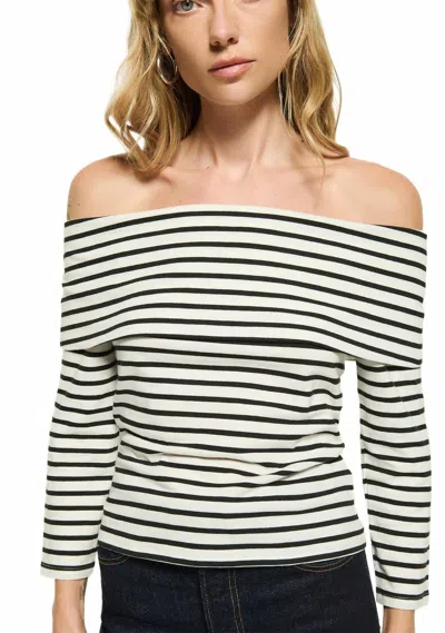 Alexi Off The Shoulder T-shirt In Cross Walk Stripe In Neutral