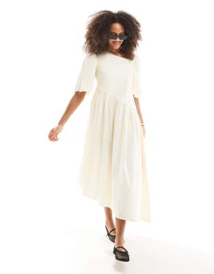 Asymmetric Midaxi Dress In Yellow