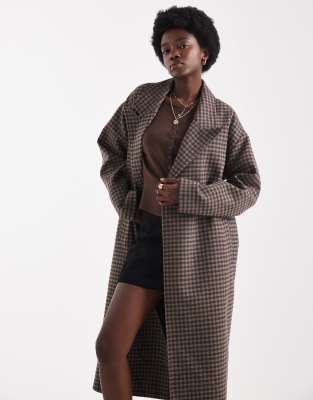 Longline Gingham Overcoat In Multi
