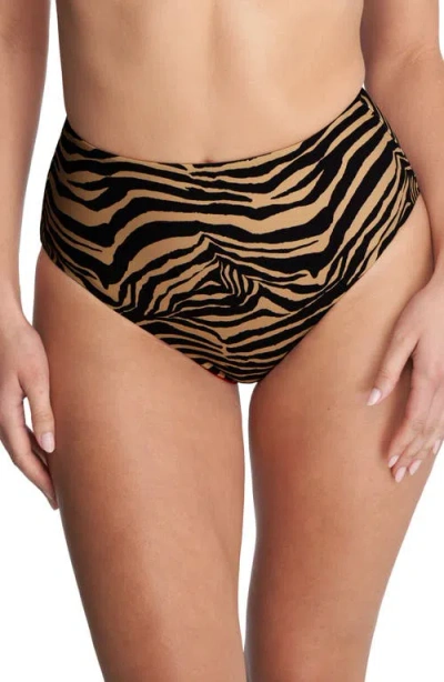 Reversible High Waist Bikini Bottoms In Brown