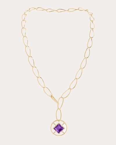 Women's Bar 14k Gold Amethyst And Diamond Lariat Necklace