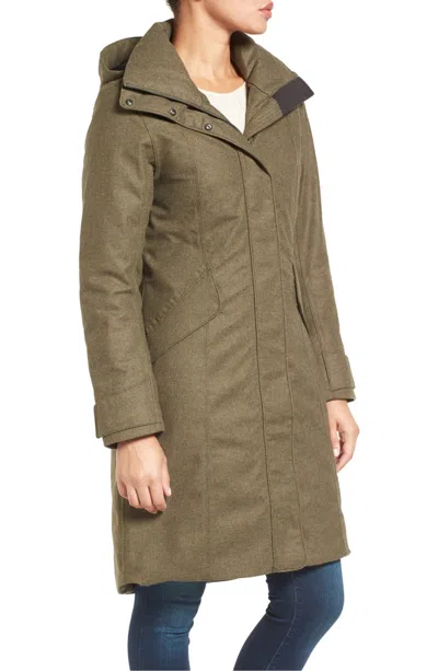 Pre-owned Waterproof Wool Down Insulated Trench Coat Winter Jacket Hood Womens Sz $545 In Green