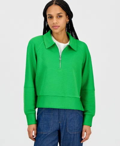 Women's Quarter Zip Ottoman Sweatshirt In Green