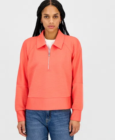 Women's Quarter Zip Ottoman Sweatshirt In Pink