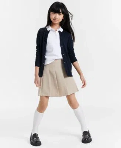 Kids' Big Girls Pointelle Stitching Cardigan Interlock Polo Shirt Pleated Scooter Skort In Blue