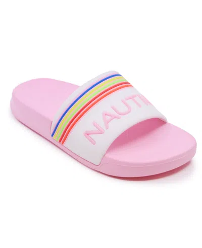 Kids' Little Girls Gaff Slide Sandals In White Neon Rainbow