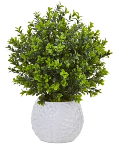 11-in Artificial Boxwood Plant With Decorative Planter In Green