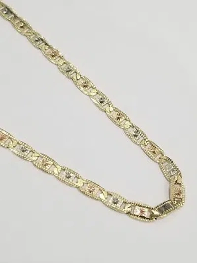 Pre-owned Real 10k Tri Tone Gold Valentino Style Chain 4 Mm 26 " Inch Men