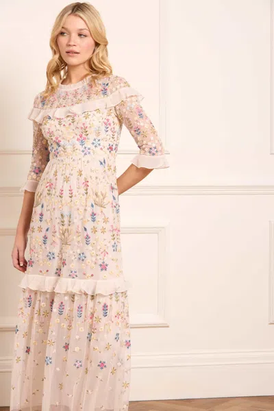 Needle & Thread is a British contemporary brand for every celebration, specialising in beautifully adorned pieces through sensitive colours and artisan decoration. Following its launch in April 2013, with a capsule collection of embellished dresses, the brand received instant recognition for offering expertly drawn lace and floral motifs in intricate threads and sequins. In 2015, the collections have continued to diversify, establishing Needle & Thread as a global celebration brand, creating unique pieces to treasure for that memorable moment.