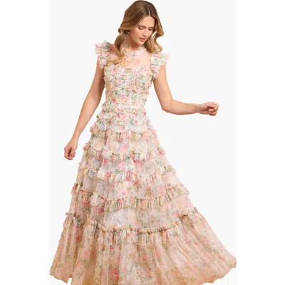 Needle & Thread is a British contemporary brand for every celebration, specialising in beautifully adorned pieces through sensitive colours and artisan decoration. Following its launch in April 2013, with a capsule collection of embellished dresses, the brand received instant recognition for offering expertly drawn lace and floral motifs in intricate threads and sequins. In 2015, the collections have continued to diversify, establishing Needle & Thread as a global celebration brand, creating unique pieces to treasure for that memorable moment.