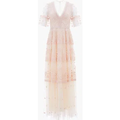 Needle & Thread is a British contemporary brand for every celebration, specialising in beautifully adorned pieces through sensitive colours and artisan decoration. Following its launch in April 2013, with a capsule collection of embellished dresses, the brand received instant recognition for offering expertly drawn lace and floral motifs in intricate threads and sequins. In 2015, the collections have continued to diversify, establishing Needle & Thread as a global celebration brand, creating unique pieces to treasure for that memorable moment.