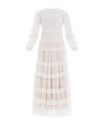 Needle & Thread is a British contemporary brand for every celebration, specialising in beautifully adorned pieces through sensitive colours and artisan decoration. Following its launch in April 2013, with a capsule collection of embellished dresses, the brand received instant recognition for offering expertly drawn lace and floral motifs in intricate threads and sequins. In 2015, the collections have continued to diversify, establishing Needle & Thread as a global celebration brand, creating unique pieces to treasure for that memorable moment.