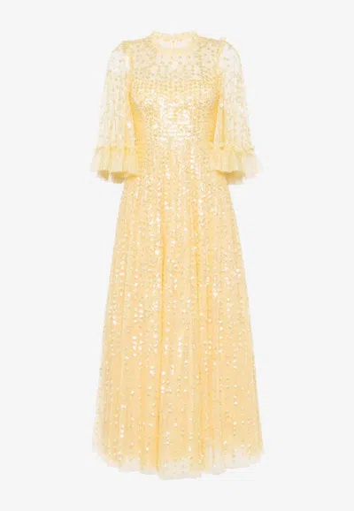 Needle & Thread is a British contemporary brand for every celebration, specialising in beautifully adorned pieces through sensitive colours and artisan decoration. Following its launch in April 2013, with a capsule collection of embellished dresses, the brand received instant recognition for offering expertly drawn lace and floral motifs in intricate threads and sequins. In 2015, the collections have continued to diversify, establishing Needle & Thread as a global celebration brand, creating unique pieces to treasure for that memorable moment.