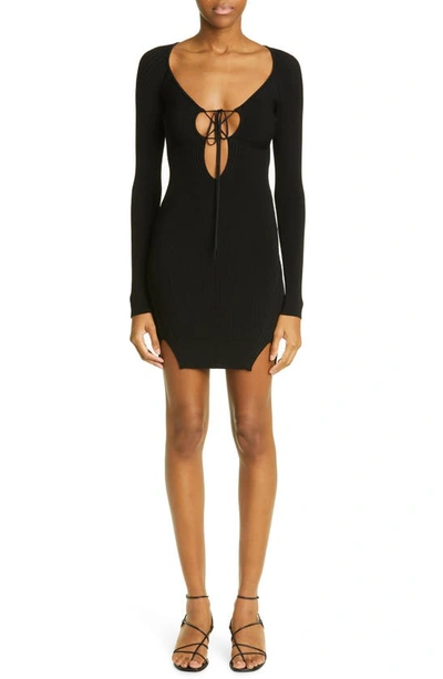 Ribbed Knit V-neck Sweater With Cut-outs In Black