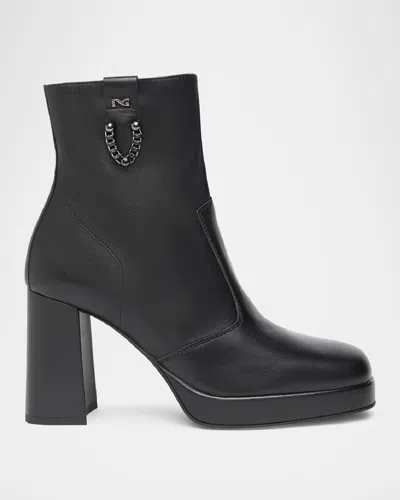 Calfskin Chain Platform Booties In Black