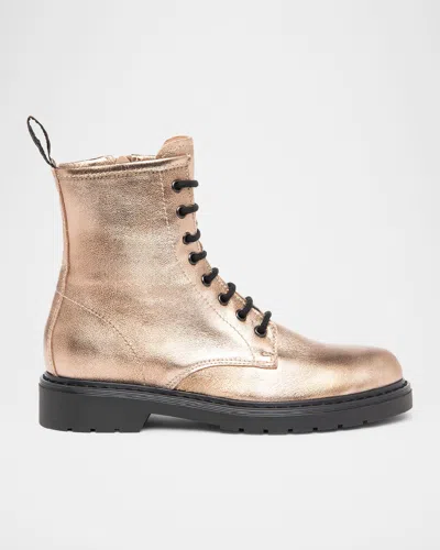 Clean Metallic Leather Combat Booties In Gold
