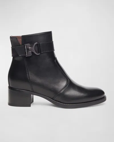 Leather Buckle Block-heel Booties In Black