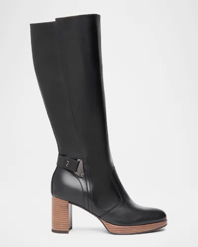 Logo Buckle Leather Knee Boots In Black