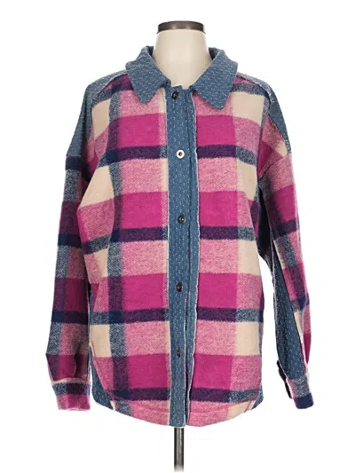 Aztec Print Snap Button Detail Hooded Top In Pink Mix In Multi