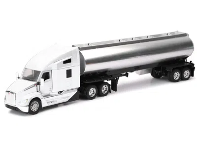 Kenworth T680 Truck White With Oil Tanker Trailer Chrome "long Haul Trucker" Series 1/32 Diecast Mod In Multi
