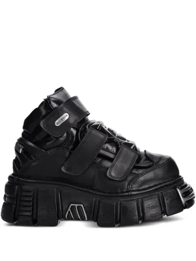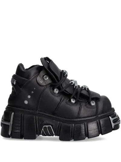M-106-c26 Lace-up Chunky Sole Trainers In Black