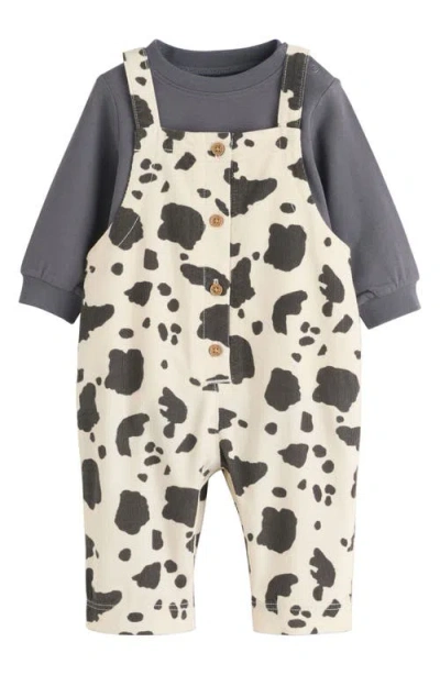 Babies' Kids' Cow Print Corduroy Overalls & Long Sleeve Bodysuit Set In Blue