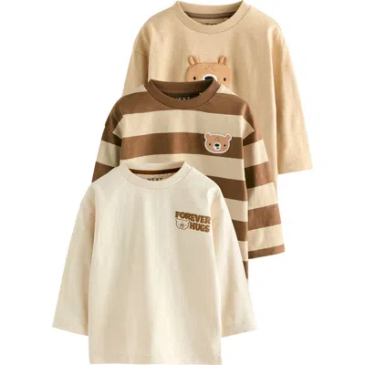 Kids' 3-pack Assorted Long Sleeve T-shirts In Brown